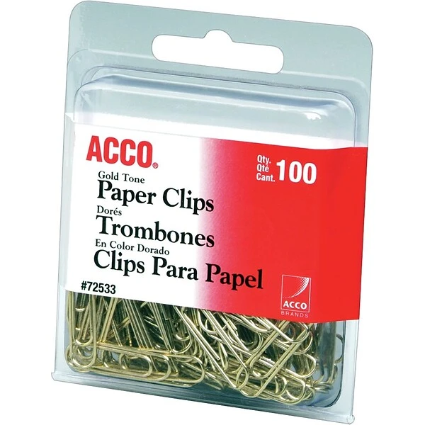 - Smooth, classy gold-tone #2 size paper clips fasten bigger paper stacks