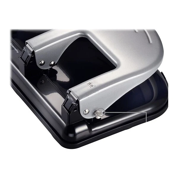 Slice through up to 40 sheets at a time with this manual hole punch. All-metal construction delivers durable performance, and the non-slip base provides added stability. This Bostitch three-hole paper punch has a separate chamber that catches paper bits for neat disposal without removing the base.