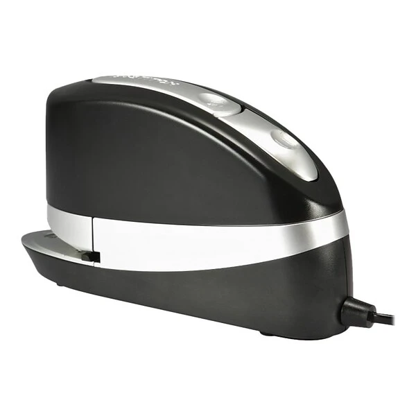 Staple up to 20 sheets of paper at once with this electric stapler. A FastLoad button refills staples quickly, while the adjustable paper stop makes it easy to position documents where you need them. This Bostitch Impulse executive electric stapler comes in a sleek black-and-silver design, prevents jams and paper damage, and features a light that turns on to alert you to reload staples.