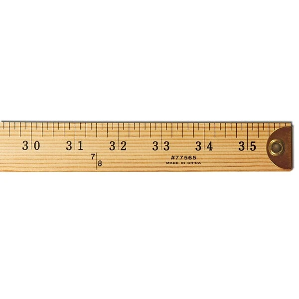 - Yardsticks are scaled with inches on both sides, one side also shows 1/8’s of a yard