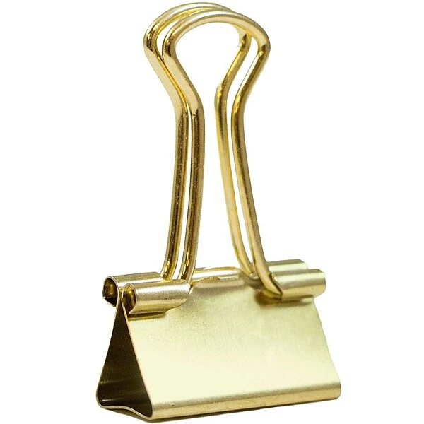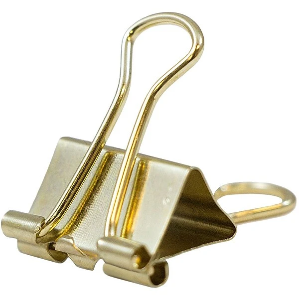 JAM Paper® Small Gold Binder Clips don’t consume a lot of space in your desk drawer, but they’re probably your most essential and versatile thing in there! These small but sturdy metal clips are golden for fastening all of your documents in one place. They can save you from the hassle of having to find what you’re looking for in a mess of paperwork. Plus, they’re shiny and flashy, so they’re hard to overlook. Stick notes, pictures and other items onto the clip’s clamp and clasp it to your desktop, computer screen, shelf or table. You can take these clips with you anywhere; they’ll find a way to be of use! This pack carries 25 clips, each one measuring 19mm.