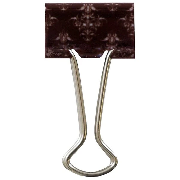 JAM Paper® Designer Binder Clips will get you organized in style! These small size binder clips measure at 19mm and are perfect for organizing and clipping documents together. The movable metal handle can be left upright so you can hang them up, or folded flat for easy storage. These clips are very versatile so use them for more then just clipping papers together! Use them to organize wires or cords, hang them from bulletin boards, or use them as stands for small items. These sets come with two different designs: green and white polka dots and dark brown damask. They are made from durable metal, have a smooth, shiny finish, and are sold in packs of 10.