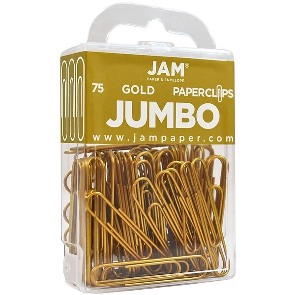 Do you want to organizes your work with excellent while making it appear refined, or even luxurious? JAM Paper® Gold Paperclips are here to help you do just that! These paper clips measure 2 inches in length and are made out of durable steel wire. In each box, there is a total of 75 paperclips! Each one features a glimmering shiny gold color. Use these gold paperclips to reliably secure notes, files, receipts, checks, projects,, documents, photos, and other papers together with ease. You will bring both order and style into your work space when you clip your papers together with these jumbo gold paperclips!