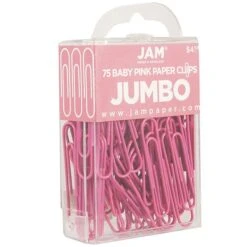 Forget those old school, boring silver paperclips and get pretty in pink with these brightly colored pink JAM Paper® Colored Jumbo Paper Clips! Besides their bold pink color, these clips are a jumbo size, meaning that they measure 2 inches long, making them perfect to hold a large amount of papers with ease. The color is sure to perfectly accessorize those documents or reports, or just to add a bit of fun flair. They are made from durable, sturdy metal so they won’t bend or break easily. They are perfect to use to organize around the house or to create a unique, color coded filing system. These clips are sold in packs of 75.