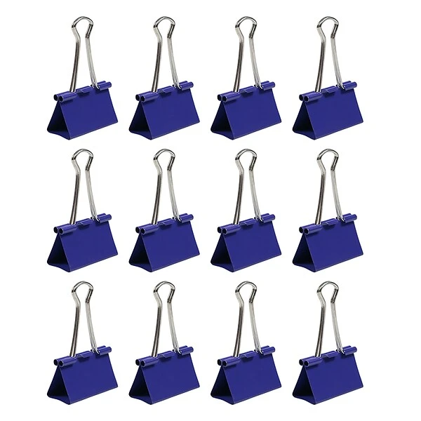 JAM Paper® Large Purple Binder Clips are necessary for keeping your documents, letters, billing statements, records and other paperwork neatly organized! Measured at 41mm, these shiny metal clips are built to hold stacks of paper and thick material. Each one features a movable silver handle that can serve multiple purposes. Fold the handle upward in order to open and close the clip, or downward to lay the clip flat and out of the way. You can also stand up the clip on its colored base so the handle can grip items you want to display. The clip’s grape shade will add character to any desk, table or filing folder! This pack contains 12 clips.