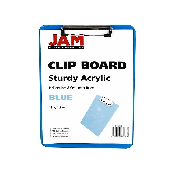 Give staff, customers or patients a convenient way to fill out information with this plastic clipboard. The blue translucent design offers a modern appearance, while the low-profile clip holds paper in place as you write. Lightweight construction and rounded corners make this clipboard easy to hold and carry. Crafted from sturdy plastic, this JAM Paper clipboard stands up to repeated use.
