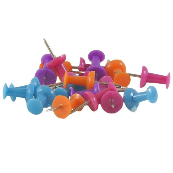 - Thumb tacks have sharp steel points and colorful decorative plastic heads