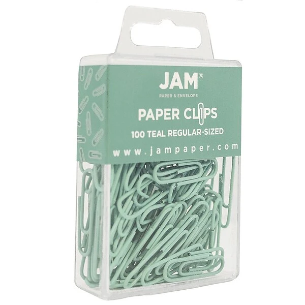JAM Paper® Small Teal Colored Standard Paper Clips are stylish, fun, and functional! Each box contains a total of 100 paperclips! Each one is made out of sturdy steel wire and is coated in bright real colored vinyl! These small paper clips measure 1 inch in length each. Simultaneously bring color and order to your office or work space with these reliable teal paper clips. Use then to reliably clip together notes, documents, memos, files, receipts, invoices, checks, cash, photos, lists, itineraries, and other papers together with ease! If teal or light blue is your favorite color, you’ll enjoy the freedom of self-expression that these paperclips provide! If your desk of workspace is looking cluttered, you’ll appreciate how easy these clips make it to keep your documents in order. Size: Small , Color: Teal , Quantity: 2/pack