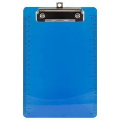 JAM Paper® Plastic Clipboards are reliable and durable, making them perfect for on-the-go students and professionals! The sturdy plastic will keep your handwriting neat and legible while the secure metal clip will keep your papers together and organized. Each clipboard also has both a standard and metric ruler etched into the sides, so when you forget your ruler, you’ll always have one handy. These small, transparent blue clip boards measure 6 x 9 inches and are perfect for smaller documents. Sold individually.