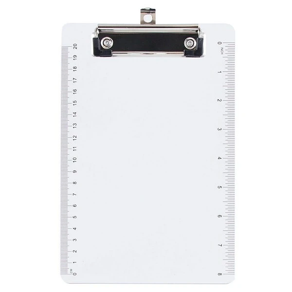 JAM Paper® Plastic Clipboards are reliable and durable, making them perfect for on-the-go students and professionals! The sturdy plastic will keep your handwriting neat and legible while the secure metal clip will keep your papers together and organized. Each clipboard also has both a standard and metric ruler etched into the sides, so when you forget your ruler, you’ll always have one handy. These small, clear clip boards measure 6 x 9 inches and are perfect for smaller documents. Sold individually.