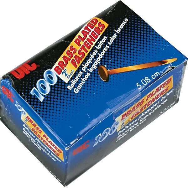 OIC® Brass-plated 1/2″ round head fastener contains sharp points/stiff shanks. Fastener features brass plating over strong steel construction, sold as 100 per box.