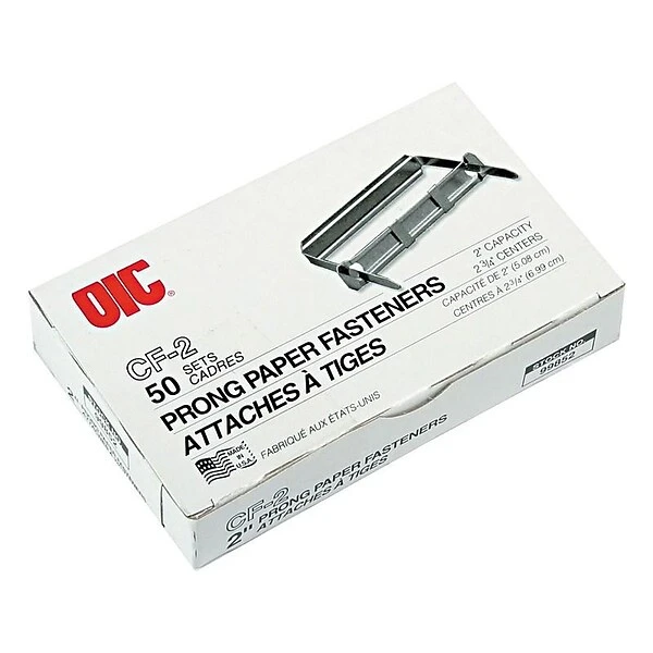 Contain document sets with these two-piece prong fasteners. Made from durable steel that resists corrosion, these Officemate two-piece complete unit prong fasteners are sturdy and provide long-lasting use, while the flexible design allows for quick and simple fastening on 2.75-inch centers.