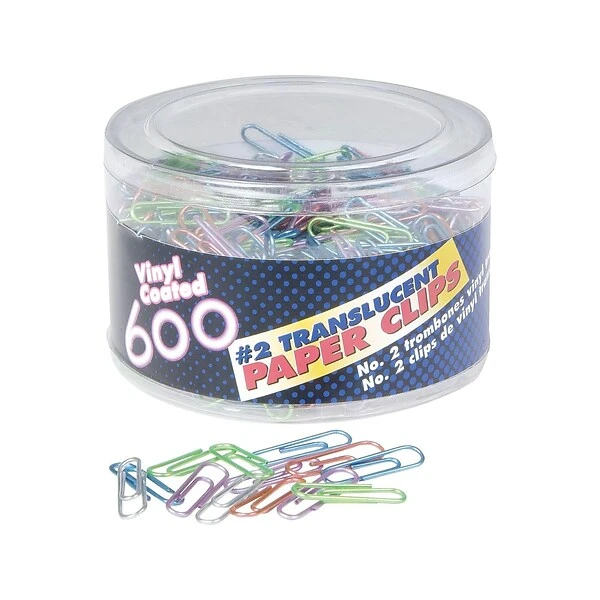 Keep important papers together with these Officemate paper clips. Each clip in this 600-count tub is coated in vinyl to slide smoothly over papers without ripping or tearing. With a bright assortment of five colors in their own compartments, this tub makes it easy to locate clips and color code documents. These Officemate paper clips provide steel holding power and are perfect for wrangling loose papers in your office.