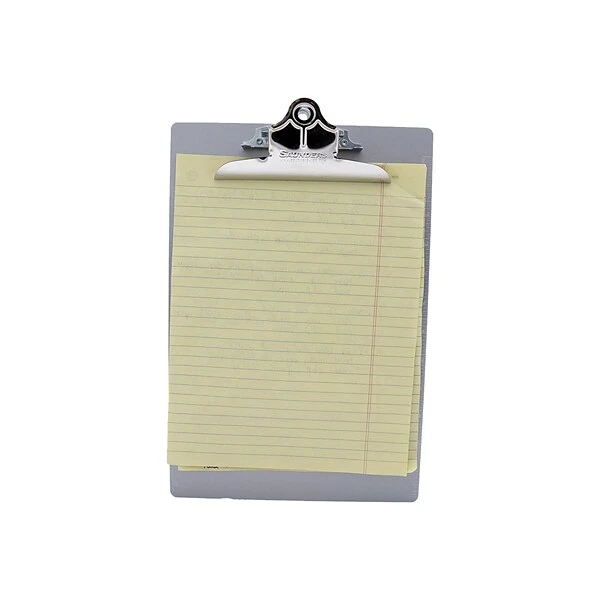 Experience a reliable, portable writing surface with this aluminum clipboard. The metal clip is spring-loaded to help prevent individual papers from slipping out, while the clipboard’s aluminum construction provides a smooth, firm surface for writing. This Saunders clipboard contains recycled content, creating a smart choice for supporting environmental protection, and it has a built-in hanging hole for quick access.