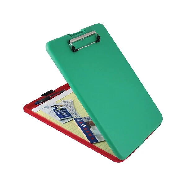 Keep disaster pans, emergency evacuation routes and other important information stored in this safety organizer. The bright green and red coloring doubles as signal to give people a warning or all-clear sign, and the low-profile clip keeps attendance rosters, employee lists and other critical documents in place as you coordinate evacuation and response services. This Saunders Show2Know snaps shut to prevent important paperwork from getting lost.