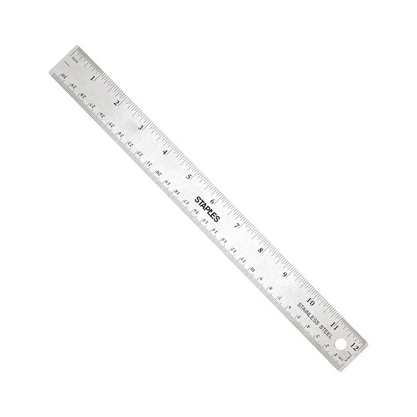 Draw straight lines or measure before cutting paper with this stainless steel ruler. The 12-inch length makes this ruler ideal for use in offices, classrooms and other professional environments, while the nonslip cork base stays firmly in place for accurate results. Imperial and metric measurements let you choose the right unit for every task. Crafted from durable stainless steel, this Staples ruler stands up to everyday use.
