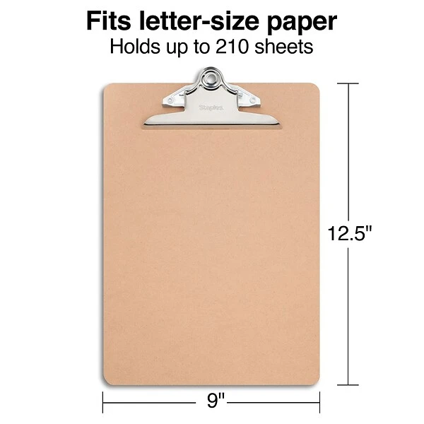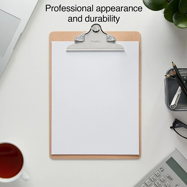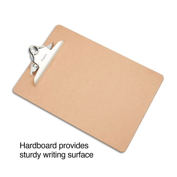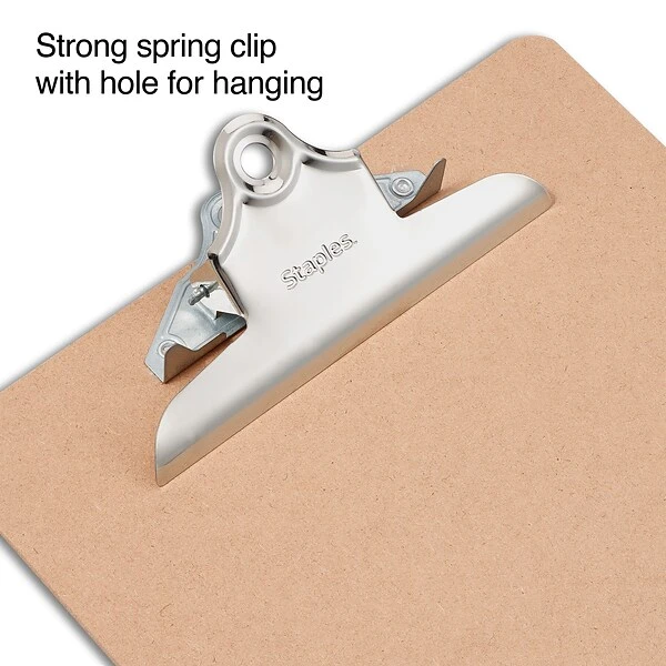 Enjoy a smooth writing surface wherever you go by using this hardboard clipboard. The hardboard material provides a smooth and sturdy surface to write on, while the metal spring clip is easy to use and clamps down on pages tightly, ensuring that individual sheets don’t fall out. This Staples clipboard has a simple brown color to provide a professional appearance.