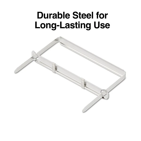 Secure documents in orderly, book-style packets with this pack of Staples Premium prong fasteners. This 50-count pack of silver fasteners lets you organize office paperwork and reference documents into neat booklets with a professional appearance so you can easily file away large documents together. The base and compressor of these Staples prong fasteners have a 2-inch capacity to hold papers together tightly for easy placement in folders.