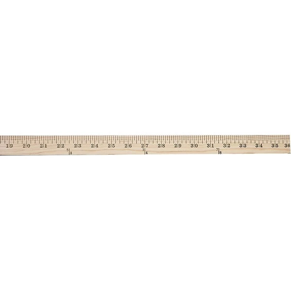 Staples Wood yardstick measures 36″ and has a layer of clear lacquer coating for extra protection. Yardstick is made of the finest kiln-dried lumber for added durability and includes a 1/8″ inch scale as well as 1/8 of a yard scale.