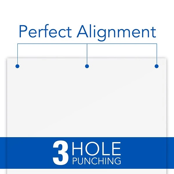 - Automatic jam reverse ensures trouble-free punching with fewer disruptions. Punches through as many as 28 sheets of paper, creating precise 9/32″ holes.