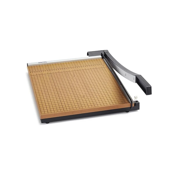 Cut perfect lines through up to 20 pages safely and easily by using this trimmer, which features a grid with metric and Imperial measurements and a blade guard for safe storage. This X-ACTO Commercial Grade guillotine paper trimmer features a self-sharpening blade and is designed for high-volume use, making it perfect for offices, schools and warehouses.